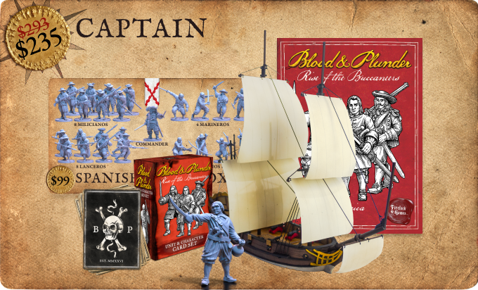 This level nets you everything you need to play Blood and Plunder at land and at sea except for the Core Rulebook, which as mentioned is available very cheaply as an add-on.